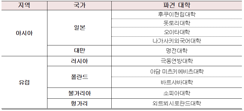 일본의 대학을 포함하여 아래와같이 파견 교환학생을모집하고 있습니다.